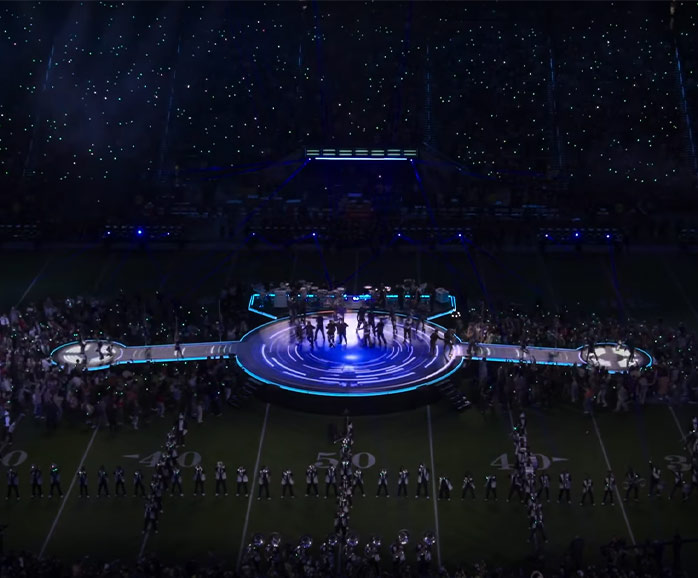 Over 100 million viewers see the extraordinary “plane” stage at this most renowned event with the celebrated performer Usher. The stage, a marvel of precision skills and artistic design, is truly one of a kind in style and was the finalist for the “Entertainment Technology Project of the Year” of AV Awards 2024.