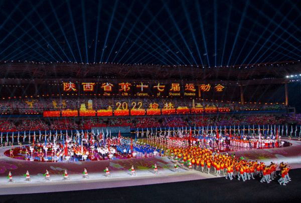 The central, oversized elliptical tile screen at the Baoji City Sports Stadium in Shaanxi Province used MG series products, covering a total area of 3,000 square meters, delivering an outstanding and dynamic stage display for the Shaanxi Provincial Games.